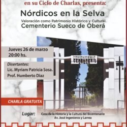 La actividad se realizará el jueves 26 de marzo, a las 20, en la Casa de la Historia y la Cultura del Bicentenario. La charla será gratuita y abordará la valoración del Cementerio Sueco de Oberá como patrimonio histórico y cultural.