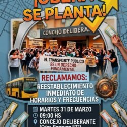La protesta fue anunciada para el martes 31 de marzo a las 9 frente al Concejo Deliberante. Entre los principales pedidos figuran el restablecimiento de horarios y frecuencias, y el cumplimiento del servicio en los barrios periféricos.