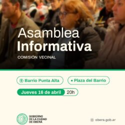 El Gobierno de la Ciudad de Oberá convoca a los vecinos del Barrio Punta Alta a participar de una asamblea informativa en el marco del proceso de renovación de autoridades de las Comisiones Vecinales.