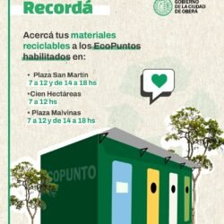 Se recuerda a los vecinos que el servicio de recolección de residuos domiciliarios se realiza los lunes, miércoles y viernes, por la mañana a partir de las 6 horas y por la tarde desde las 14 horas.