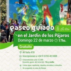 El domingo 22 de marzo, la Dirección de Turismo, Recreación y Cultura de Oberá organiza un recorrido a pie por el Jardín de los Pájaros, uno de los espacios verdes más reconocidos de la ciudad. La actividad es gratuita y apta para toda la familia.