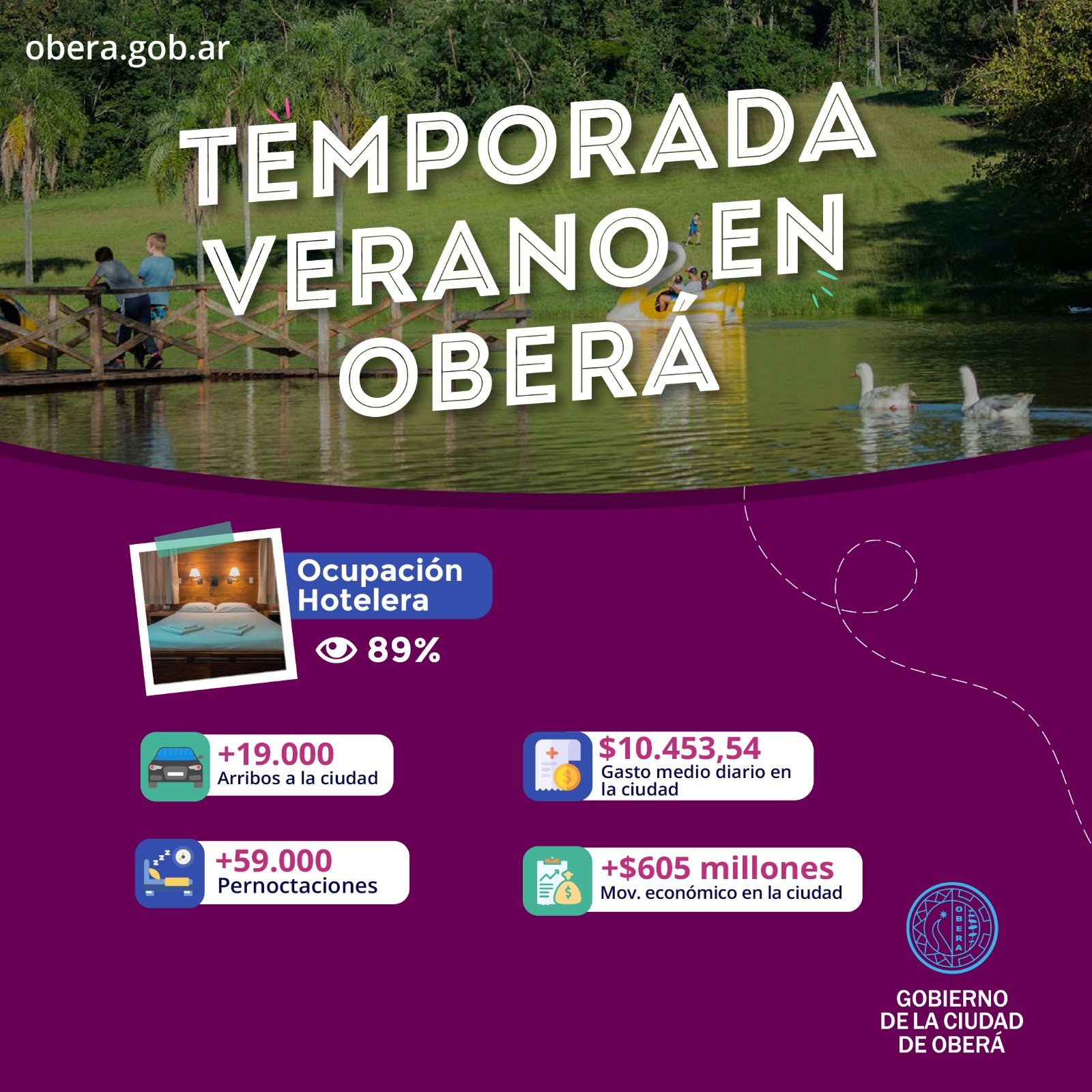 Los turistas que llegaron a la Capital Nacional del Inmigrante durante la temporada de verano, que incluye los meses de diciembre, enero y febrero promediaron una ocupación hotelera del 89% (hoteles, cabañas, hosteles inscriptos en el Ministerio de Turismo).