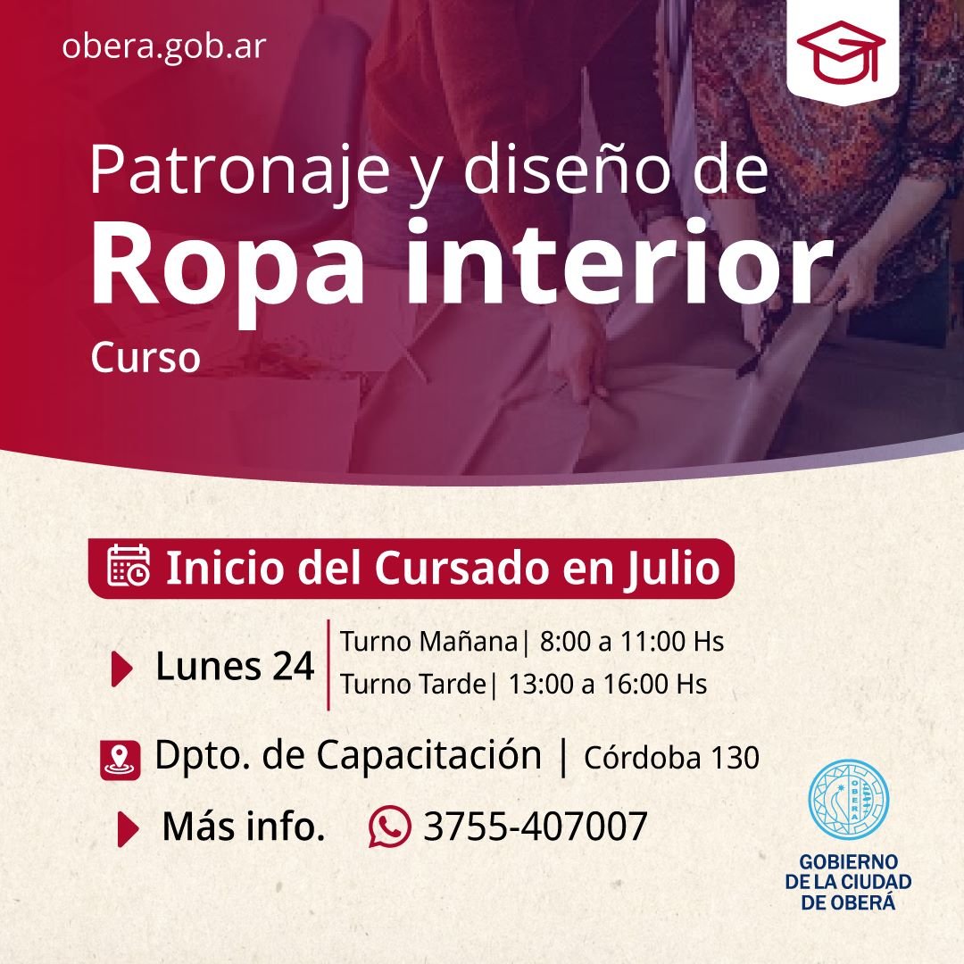 El próximo lunes 24 de julio, se dará inicio al cursado de patronaje y diseño de ropa interior. El mismo, será dictado en el Departamento de Capacitación, Córdoba 130.