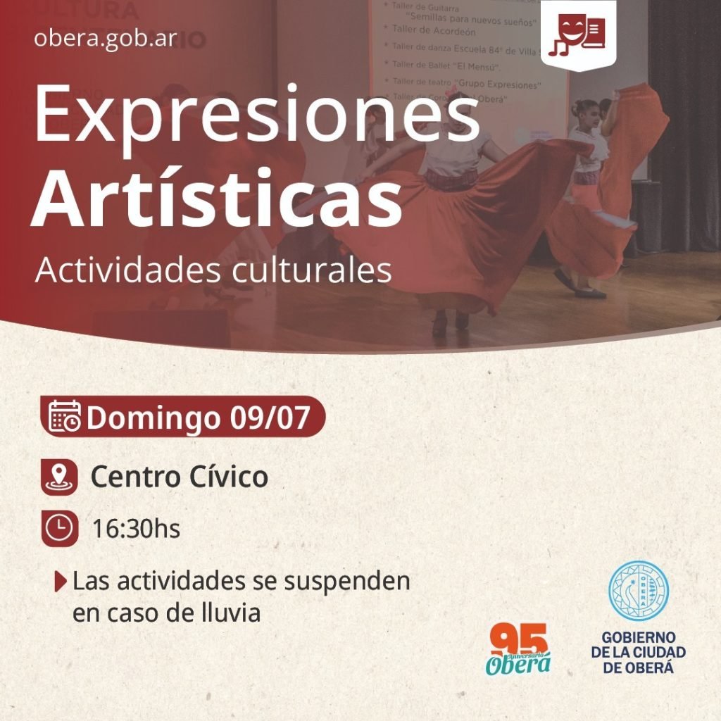 El Gobierno de la Ciudad de Oberá invita a toda la comunidad a participar de esta propuesta cultural, que tendrá danzas, bandas en vivo y otras expresiones de artistas obereños.
