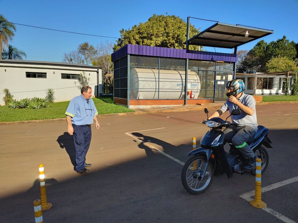 Con el objetivo de fortalecer los conocimientos de conducción segura, el Departamento de Seguridad Vial de la Dirección de Inspección General y Tránsito, brindó una capacitación a los trabajadores de dicha empresa que trabajan con motocicletas.
