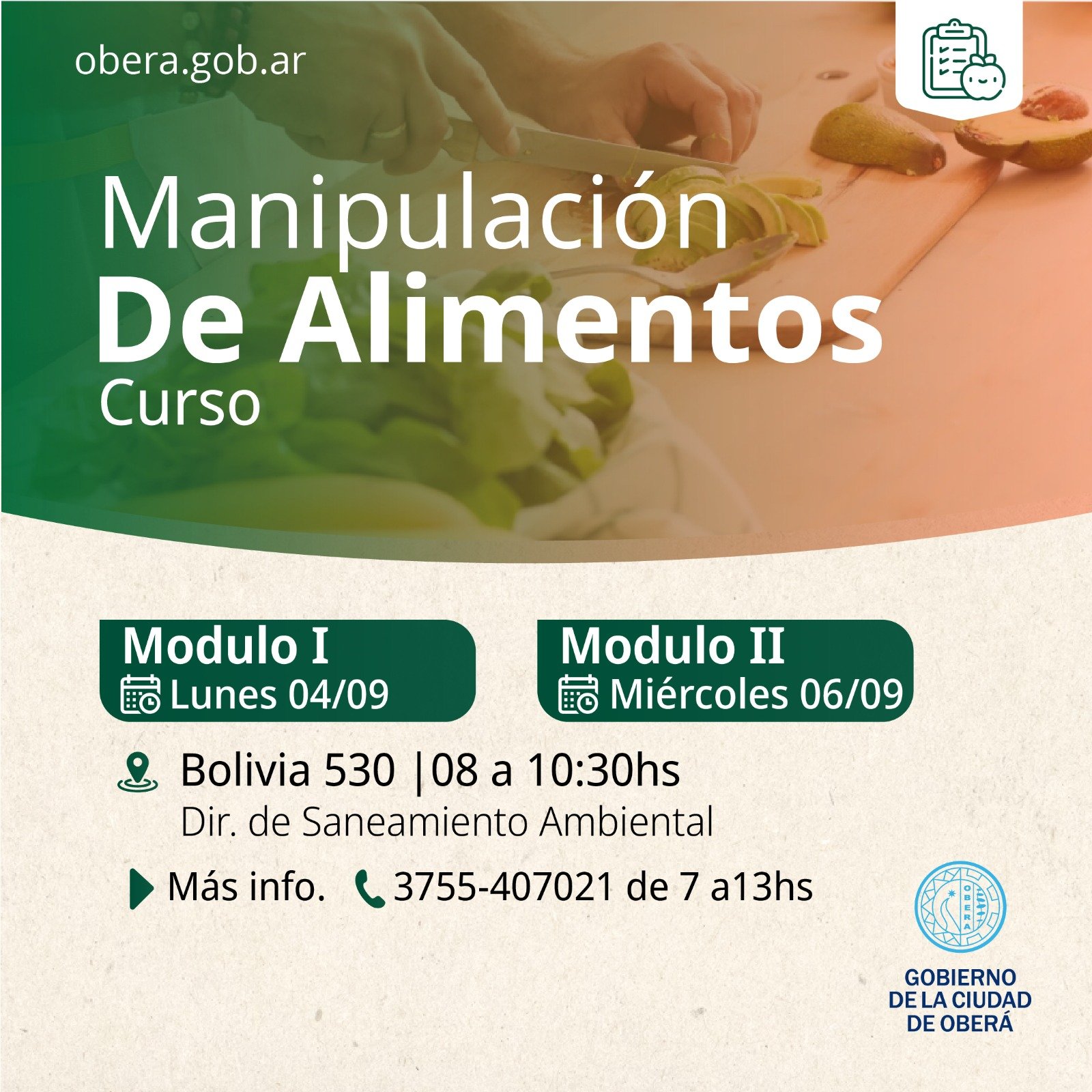 El Departamento de Seguridad Alimentaria informa que el día lunes 4 de septiembre comienza el curso de manipulación segura, requisito para tramitar el carnet de manipulador de alimentos.