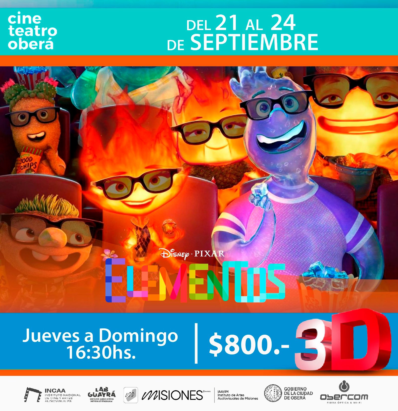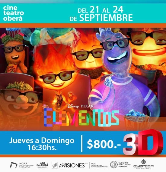 - Elementos – 3D – $800 – Clasificación: PG (con supervisión de los padres) – de jueves a domingo – 16:30hs (castellano).