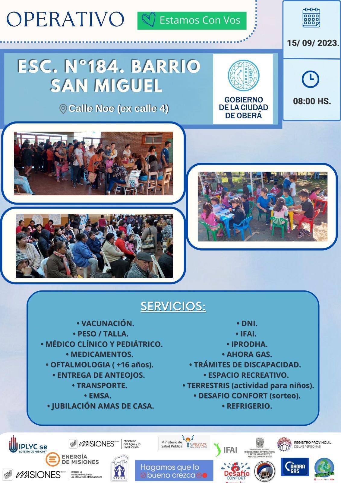 En la Escuela N°184 del Barrio San Miguel, se está llevando adelante el operativo “Estamos Con Vos”, organizado por el IPLyC, que brinda los siguientes servicios:
