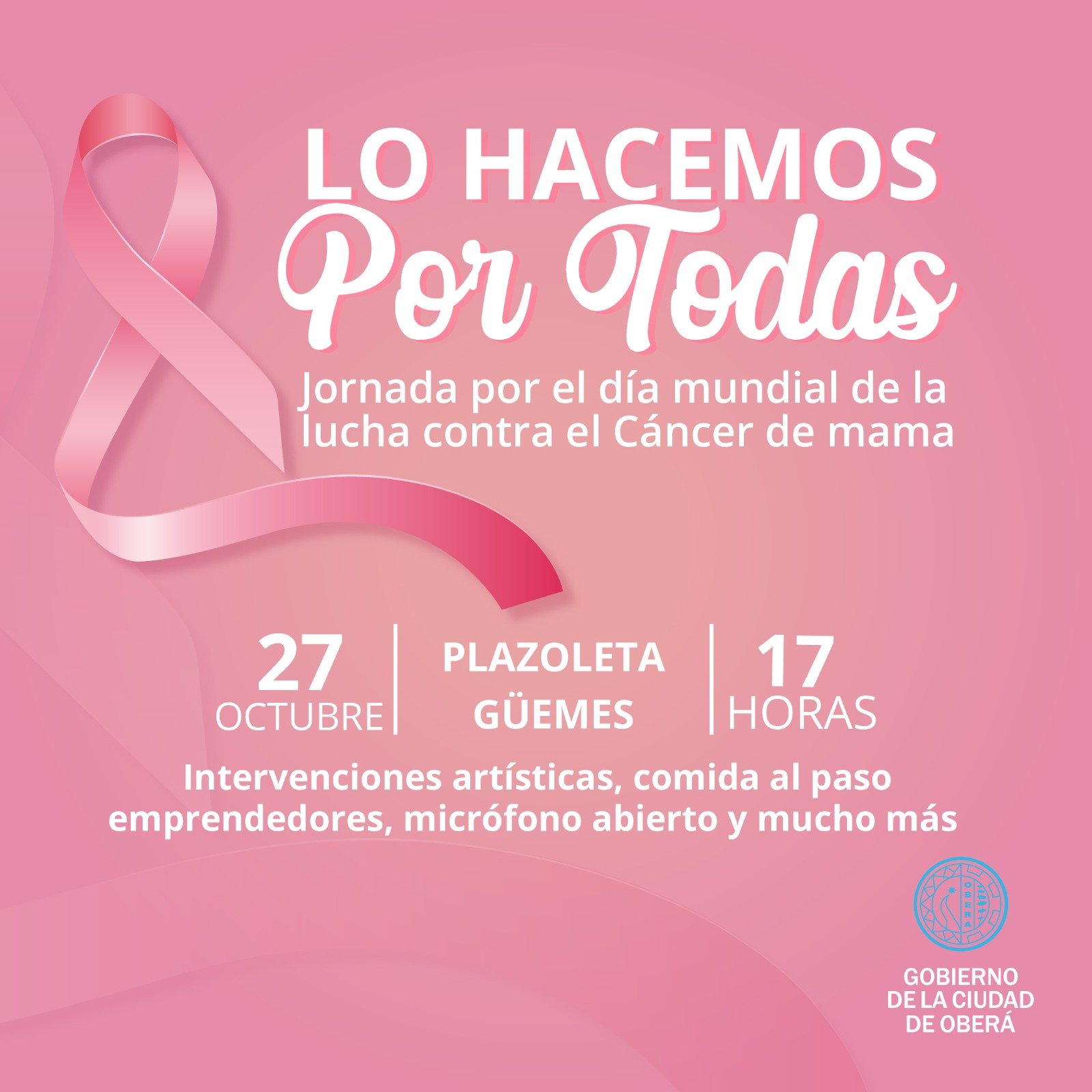 Debido a las condiciones climáticas la jornada por el día mundial de la lucha contra el Cáncer de mama, sufrió modificaciones y se realizará el día viernes 27 de octubre.