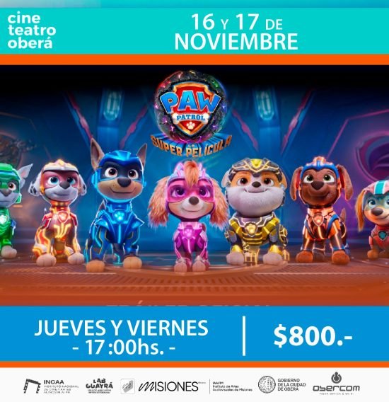 - Paw Patrol: La Súper Película – $800 – jueves 16 y viernes 17 – 17hs (Todo Público).