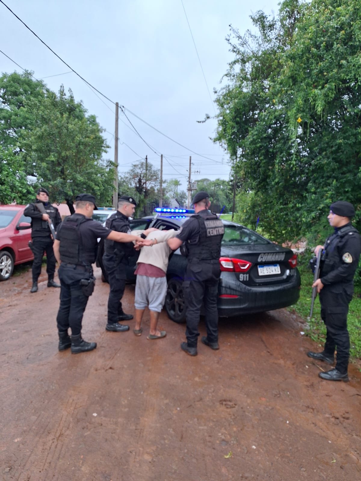 Cumplidos los trámites de rigor que incluyen examen médico y notificación del motivo de detención, el detenido permanece alojado en la Comisaría Jurisdiccional a disposición del juez que interviene en la investigación de los hechos que lo involucran.