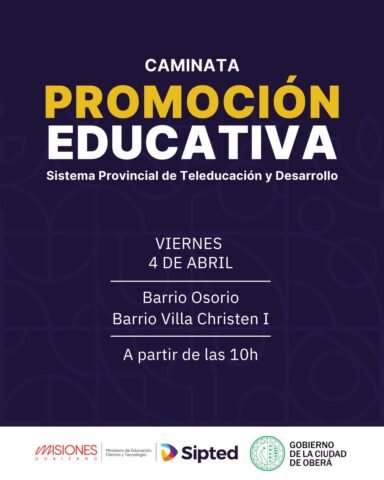 Mañana viernes 4 a partir de las 10 horas en el salón de usos múltiples de villa Cristen y a las 10:30 en el barrio Osorio, se encontrarán en el barrio un equipo que brindará información sobre el Sistema Provincial de Teleducación y Desarrollo (SiPTeD) y además inscribirá a quienes desean finalizar sus estudios.