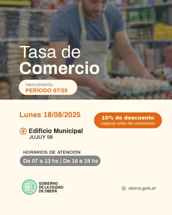 Se recuerda a los contribuyentes que, para mayor comodidad, además del pago presencial en el edificio municipal (Jujuy 58), se puede abonar ingresando al Portal Tributario obera.gob.ar/servicio-online/portal-tributario/