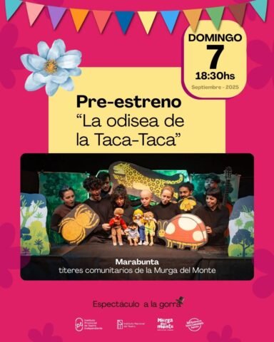 En tanto, el domingo 7 de septiembre a las 18:30 será el turno de “La odisea de la Tacataca”, una obra de títeres destinada a niños y niñas a partir de los cinco años. La trama sigue a Rulo, María y Emilio, un grupo de amigos que se adentra en el monte en busca de la Tacataca mágica para ayudar a Cucu a vencer sus miedos. Con humor, canciones y aventuras, la puesta resalta valores como la amistad y la valentía.