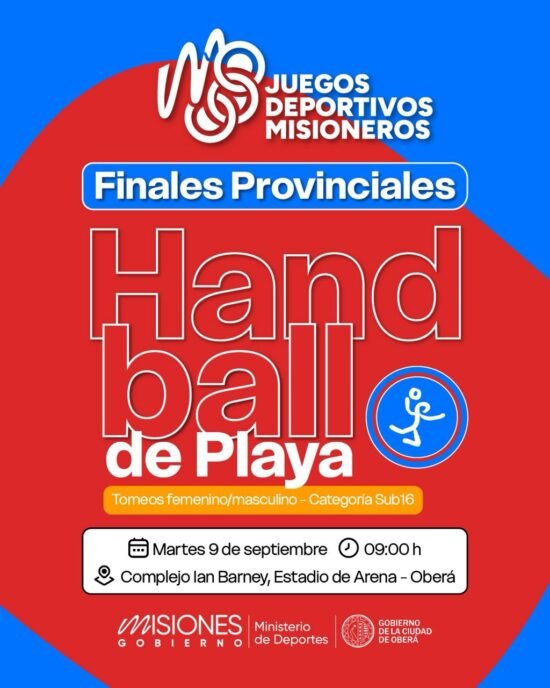 Oberá será epicentro de la actividad deportiva provincial con una jornada cargada de competencias en el marco de los Juegos Deportivos Misioneros. Desde las 8 de la mañana, el Complejo Ian Barney albergará encuentros de vóley, futsal y handball de playa, con la participación de equipos de distintas localidades.