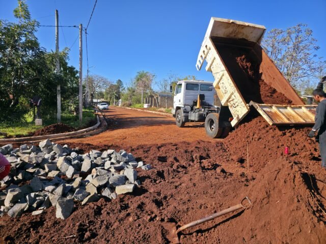 El Gobierno de la Ciudad de Oberá, junto a los vecinos de Villa Svea, continúa con las obras sobre la calle Cristo Rey. Tras la construcción del cordón cuneta, ya se encuentra en una etapa avanzada la colocación de empedrado que se extiende hasta la Ruta 103.