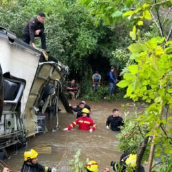 Un grave siniestro vial se registró en la madrugada de este domingo sobre el kilómetro 892 de la Ruta Nacional 14, entre Oberá y Campo Viera, donde un colectivo de la empresa Sol del Norte colisionó con un automóvil y terminó cayendo al arroyo Yazá.