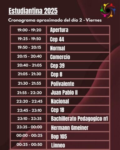 En esta nueva edición participarán 16 establecimientos educativos, cuyos estudiantes desplegarán todo su talento en coreografías, batucadas y producciones artísticas originales. El evento también incluirá un abanico de propuestas para diversificar la grilla: la presentación de los reyes de las ediciones 2024 y 2025, competencias de freestyle, DJ’s en vivo y artistas invitados que ofrecerán shows especiales.