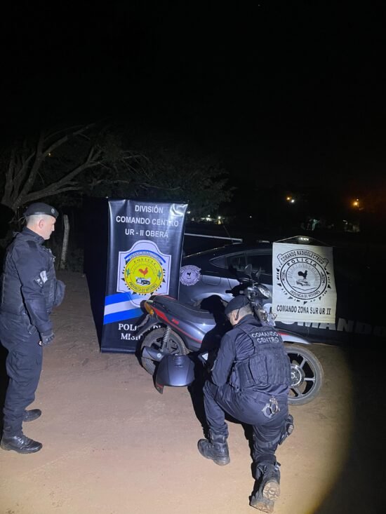 En horas de la madrugada, un vecino de Oberá se comunicó telefónicamente con el Comando Centro para alertar sobre dos masculinos empujando y tratando de encender una moto en cercanías a la cancha Malvinas. La rápida respuesta policial finalizó en el secuestro del rodado que había sido robado, persistiendo la búsqueda de los dos sospechosos.