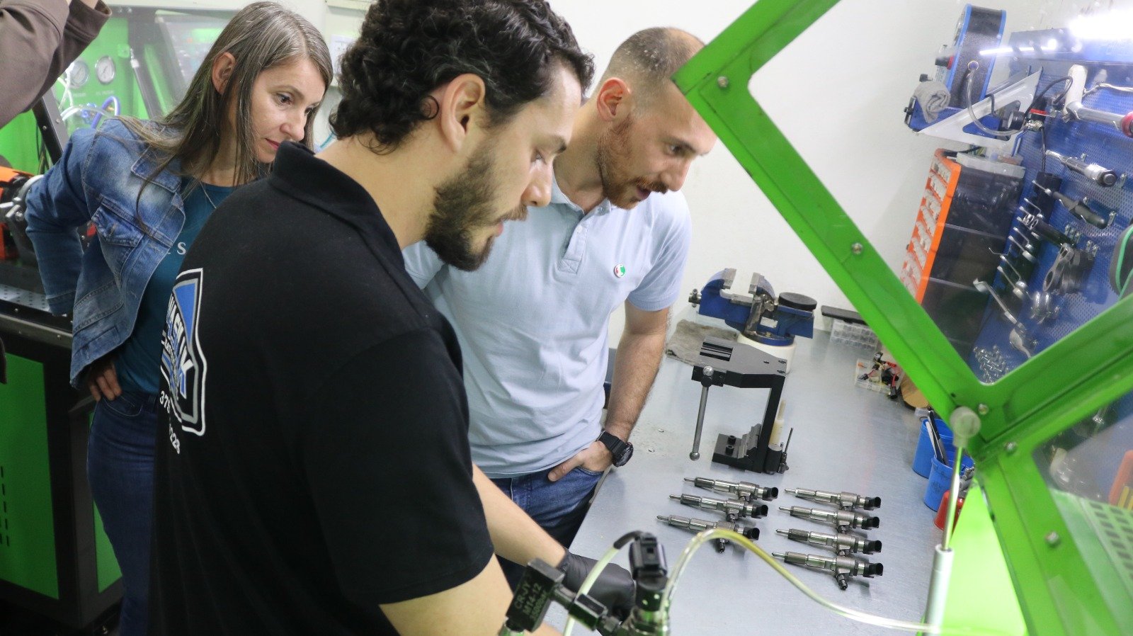 “Somos una empresa familiar dedicada a la reparación de todo lo que son sistemas de inyección diésel. Trabajamos con bombas e inyectores, tanto convencionales como electrónicos”, explicó su titular durante la recorrida.