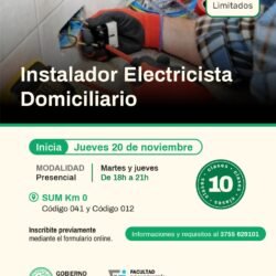 El Gobierno de la Ciudad de Oberá, en conjunto con la Facultad de Ingeniería de la Universidad Nacional de Misiones, invita a participar del Curso de Formación Profesional: Instalador Electricista Domiciliario.