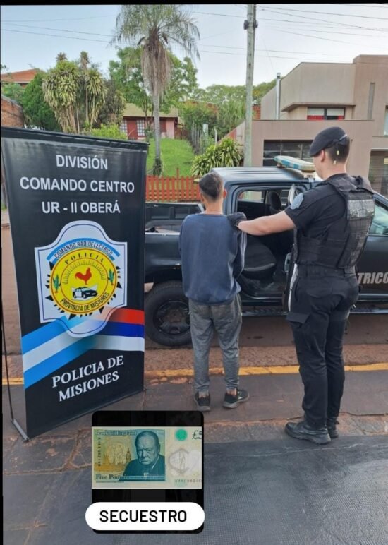 Tras días de vigilancia y tareas encubiertas, efectivos del Comando Radioeléctrico lograron detener a “Dani” de 19 años, en el barrio 40 Viviendas del sector Lombardi. En su poder se halló un billete de cinco libras esterlinas, vinculado al primer hecho investigado.