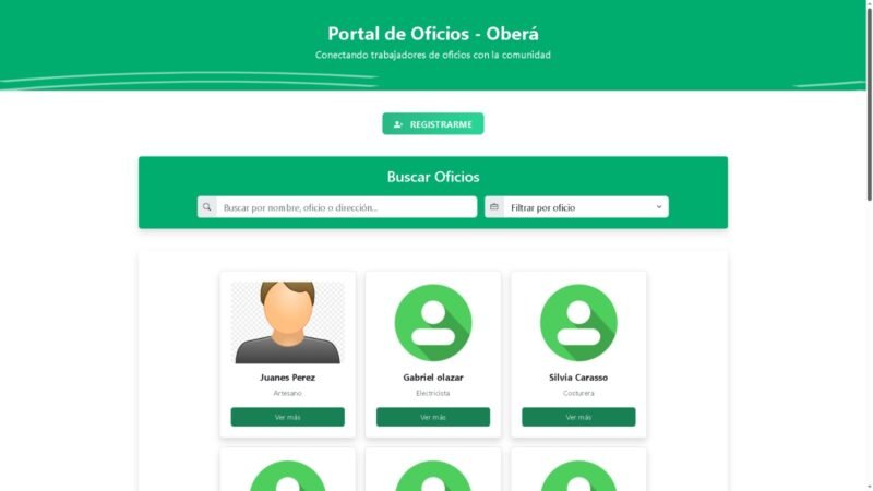La plataforma es pública, digital y accesible, permitiendo que los vecinos consulten de forma ágil la lista de oficios disponibles en la ciudad, aportando transparencia y facilitando el contacto directo con los prestadores de servicios.