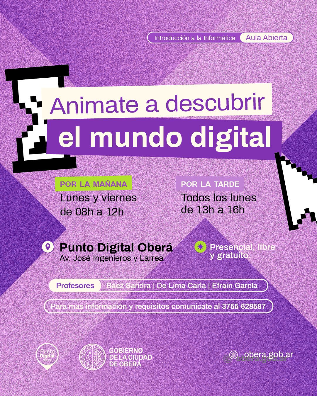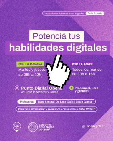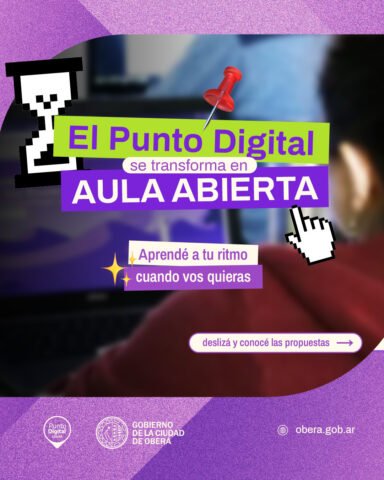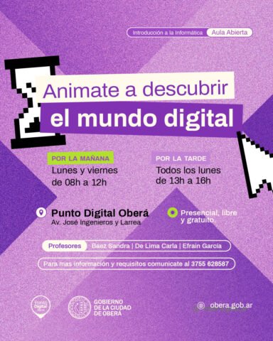 El Gobierno de la Ciudad de Oberá, a través del Departamento de Capacitación y el Punto Digital, presenta una nueva modalidad de formación permanente en temáticas referidas a la informática y al mundo digital.