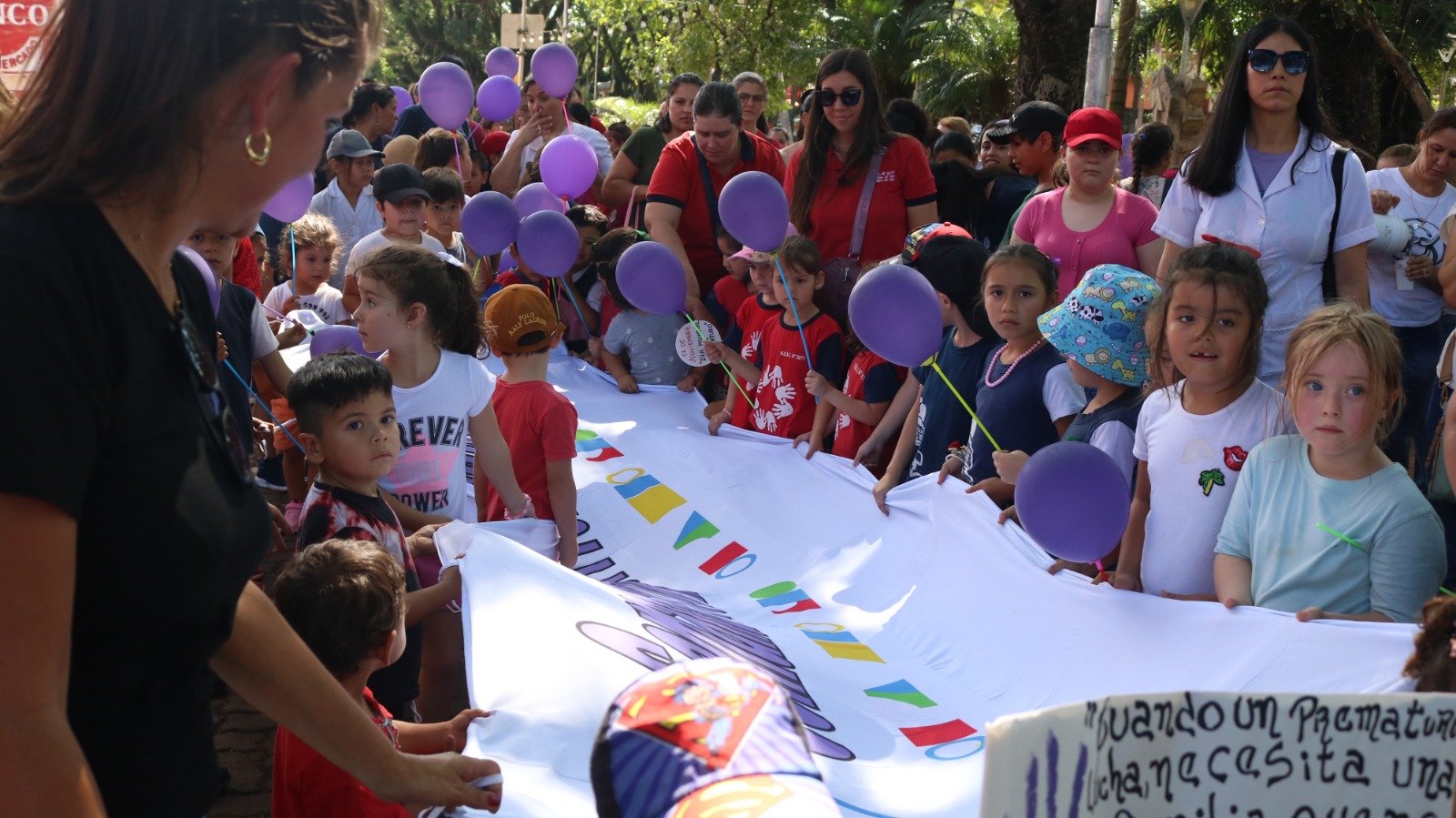 El evento se realizó en la plazoleta Güemes y reunió a niños y niñas de los NENI, EPIs, el Hogar de Día y el Hogar Mitaí, además de docentes, cuidadoras, profesores de educación física, familias y equipos de salud, en el marco de la Semana Provincial del Niño Prematuro.