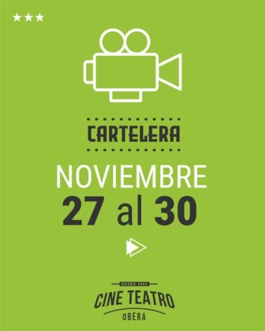 El Cine Teatro Oberá – Espacio INCAA presentó su programación para el jueves 27 al domingo 30 de noviembre, con una cartelera que combina estrenos internacionales, cine nacional y propuestas para diversas edades.