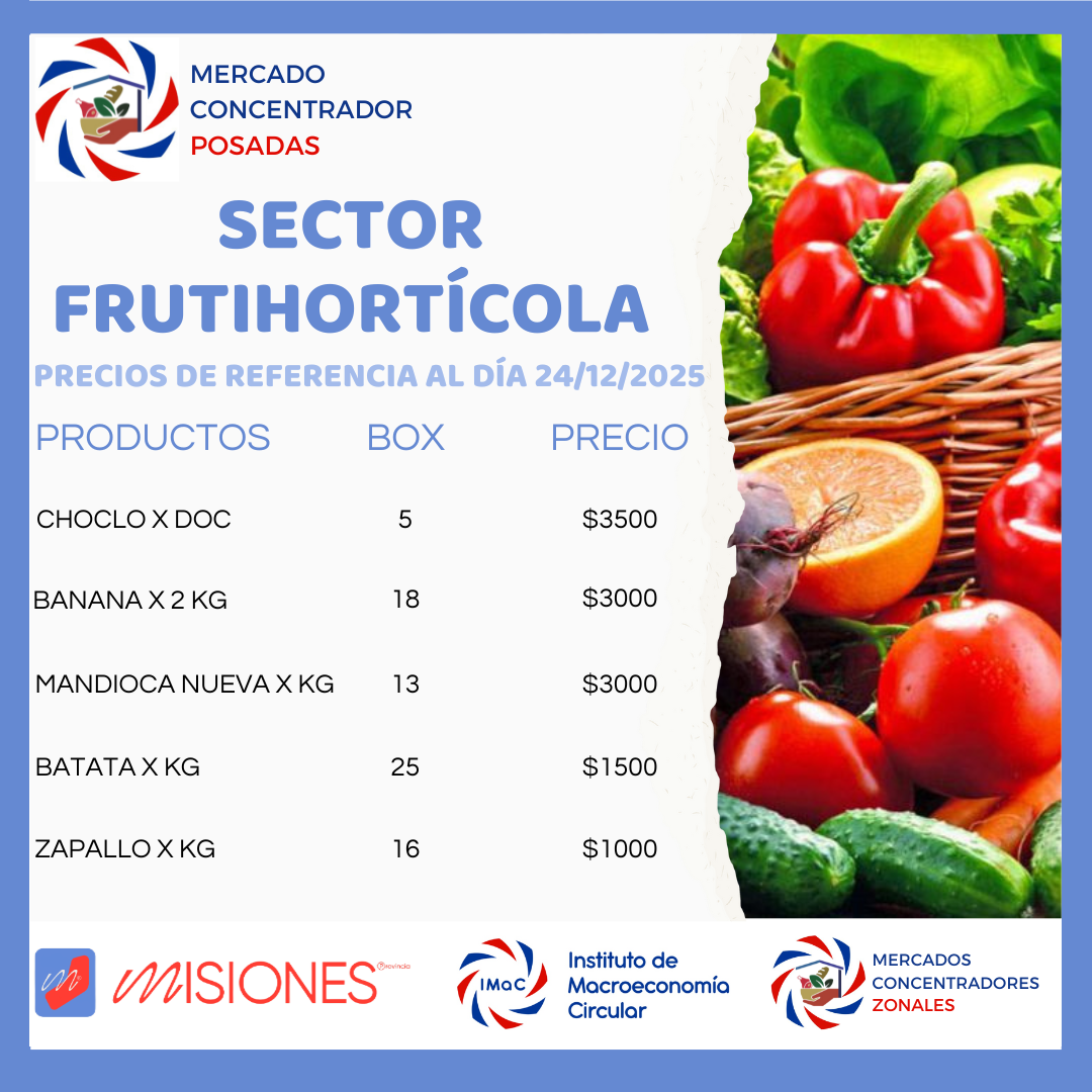 Estos valores, pensados para garantizar el acceso a productos frescos y de calidad, se mantendrán vigentes hasta el próximo sábado en los tres Mercados Concentradores de la provincia: Posadas, Eldorado y Oberá.