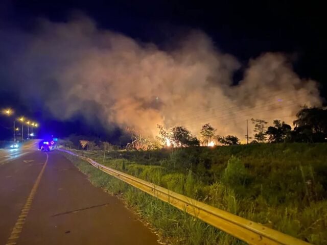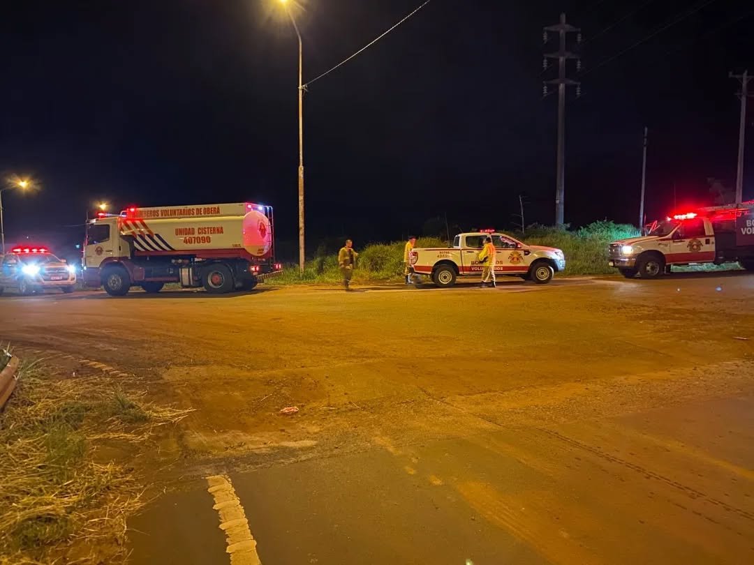 Desde el Cuerpo de Bomberos Voluntarios de Oberá informaron, además, que la intervención comenzó a las 22:09, cuando la guardia fue alertada por un incendio forestal en el acceso a Guaraní. En un primer momento se desplazó una unidad de ataque rápido y, tras evaluar la magnitud del siniestro, se solicitó apoyo de tres dotaciones adicionales. El despliegue incluyó una autobomba, una unidad cisterna y un móvil de apoyo logístico, con un total de nueve bomberos.