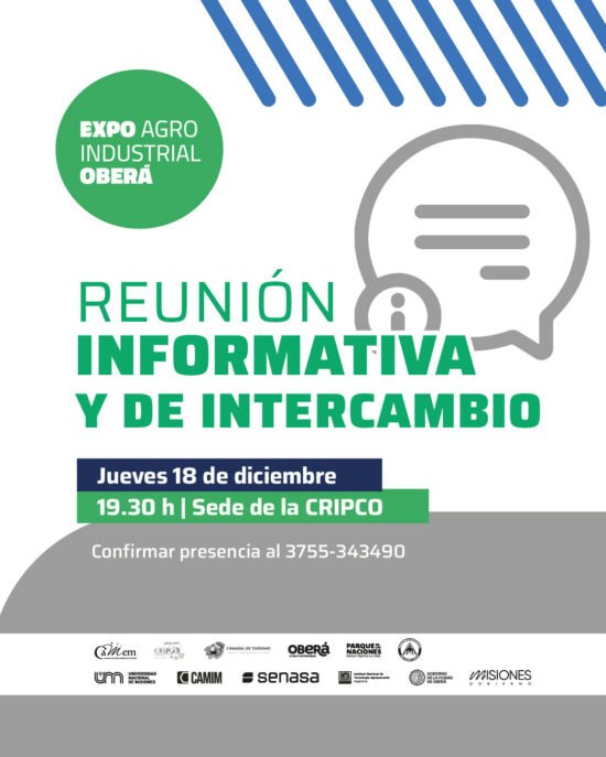 Mañana jueves 18 de diciembre se realizará una reunión informativa en la Cámara de Industria, Producción y Comercio de Oberá, destinada a empresas que estén interesadas en la Expo Agro Industrial 2026.