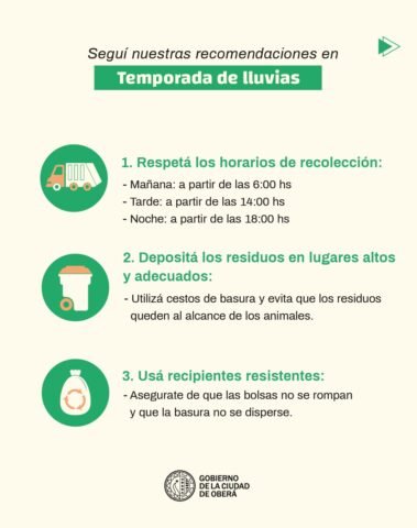 Con el objetivo de prevenir inundaciones y mantener las calles limpias y seguras, el Gobierno de la Ciudad de Oberá recuerda a los vecinos la importancia de seguir una serie de recomendaciones durante la temporada de lluvias.