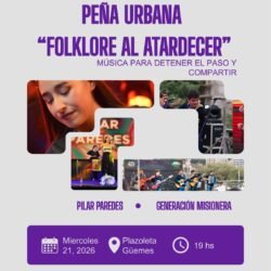 Generación Misionera y Pilar Paredes se encuentran en la Plazoleta Güemes para compartir folklore, identidad y emoción al atardecer. Un momento simple y cercano, donde la música abraza a quienes pasan y se quedan.