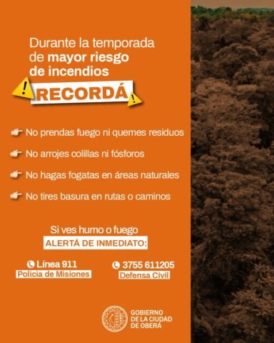 El Gobierno Provincial emitió un comunicado de urgencia ante la combinación de altas temperaturas y sequía. En conjunto con el Gobierno de la Ciudad de Oberá advierten que cualquier chispa puede desatar una catástrofe ambiental y recuerdan que está estrictamente prohibido el uso del fuego.