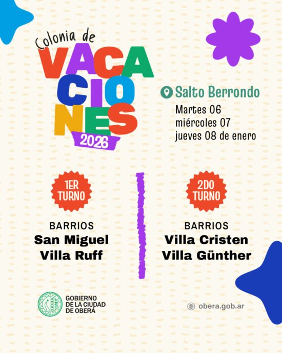 Las instalaciones del Complejo Turístico Salto Berrondo darán inicio a una nueva temporada de la Colonia de Vacaciones, destinada a niños y niñas de distintos barrios de la ciudad de Oberá.