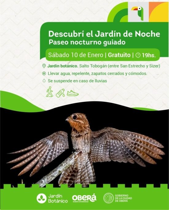 En el marco de una temporada de verano que busca conectar la naturaleza con la comunidad, la Dirección de Turismo, Recreación y Cultura del Gobierno de la Ciudad de Oberá apuesta una vez más por uno de sus atractivos más interesantes. Debido al éxito y la excelente recepción que tuvo esta actividad durante el año 2025, se decidió programar una nueva edición del paseo guiado «Descubrí el Jardín de Noche».