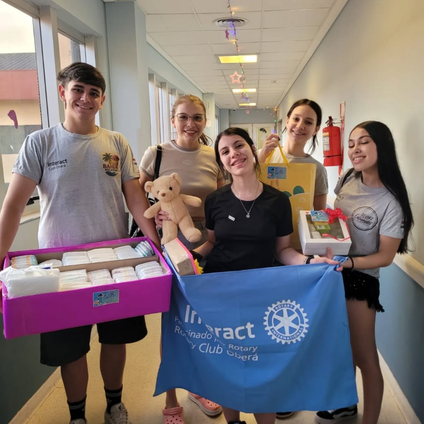 Como sucede cada año en Oberá, el primer nacimiento activó la movilización de las instituciones de servicio de la comunidad. En esta oportunidad, los jóvenes del Interact, junto a representantes del Rotary Club de Oberá, se acercaron al centro de salud público para acompañar a la familia en este momento trascendental.