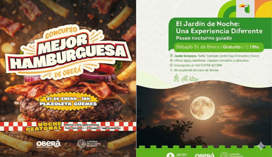 En el Jardín Botánico se vivirá una nueva edición del Paseo Nocturno, una actividad que ya se volvió un clásico de la temporada 2026. En este punto, se destaca el trabajo de la Dirección de Turismo, Recreación y Cultura del Gobierno de la Ciudad de Oberá, que ofreció con éxito esta propuesta todos los sábados de enero y que este 31 volverá a abrir las puertas del Jardín Botánico para una experiencia inmersiva única.