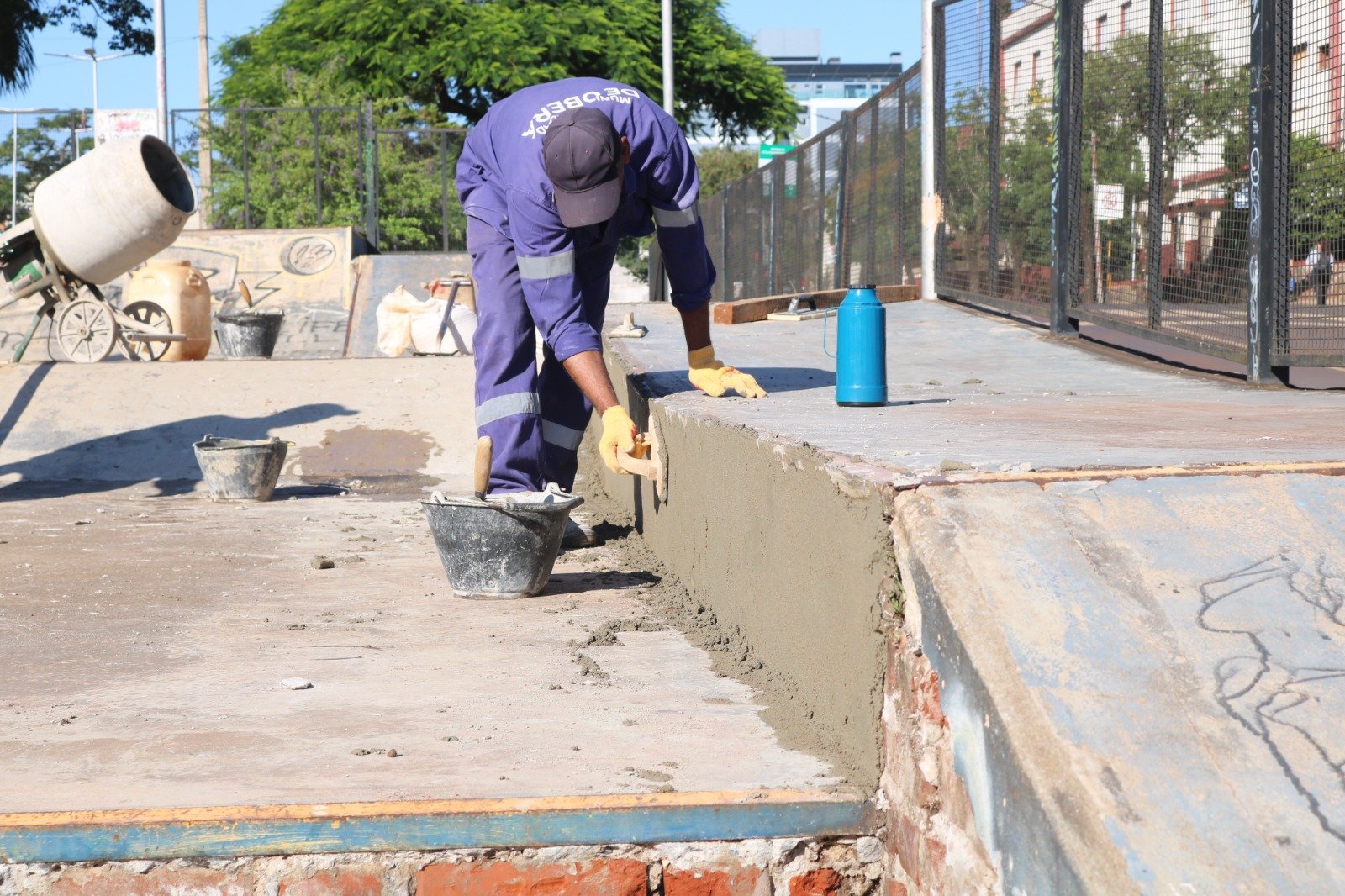 En el Skatepark, ubicado frente al colegio San Juan Juan Pablo II, se realizaron tareas de reacondicionamiento de los soportes de las barandas laterales, que se encontraban flojas. Los mismos fueron afirmados. Además, se avanza en la construcción de un muro en la parte superior, sobre el sector lindante a la Plaza Asunción del Colegio Mariano, donde también se está reacondicionando un muro que presentaba deterioro.