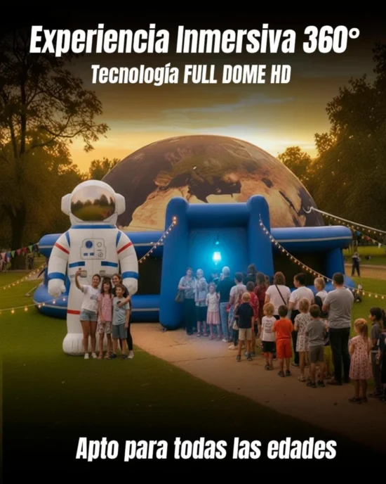 La actividad se desarrollará en Ian Barney 2, Tartagal 2079, con funciones cada 40 minutos entre las 18:00 y las 22:40 horas. El formato de planetario itinerante permite que el público ingrese a una estructura inflable con proyección en 360°, generando una experiencia envolvente que combina imágenes, sonido y relato.