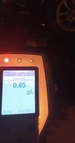 Ante esta situación, se procedió a la demora preventiva de Juan Carlos O., de 59 años. Personal de Tránsito Municipal le practicó el test de alcoholemia, el cual arrojó resultado positivo con 0,85 gramos de alcohol por litro de sangre.