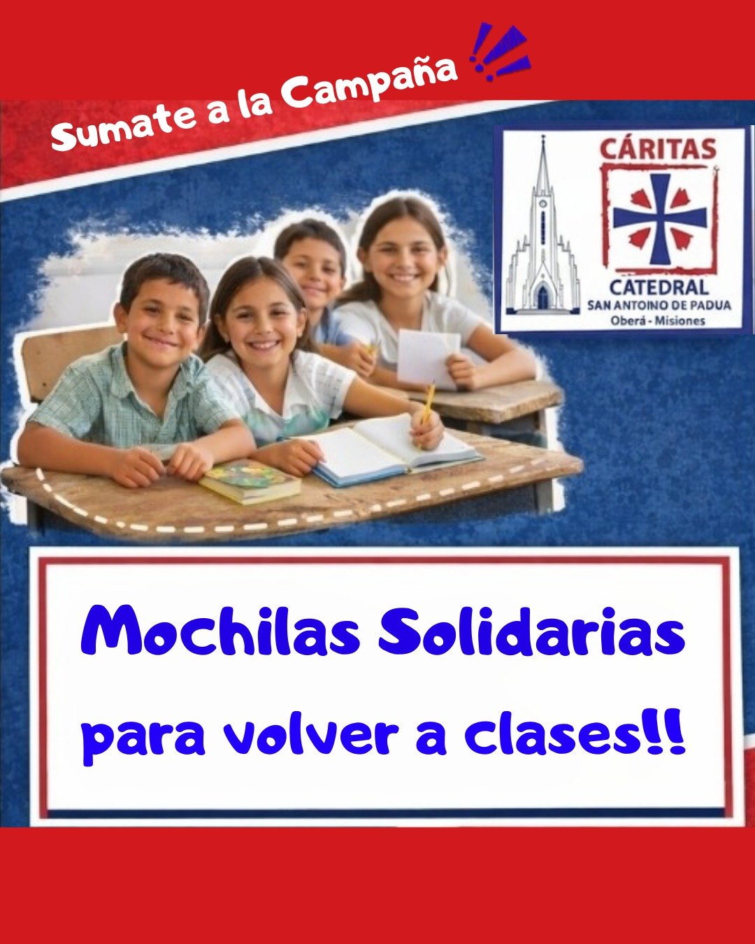 Con el inicio del ciclo lectivo cada vez más cerca, Cáritas San Antonio de Padua Oberá puso en marcha la campaña “Mochilas Solidarias”, una iniciativa destinada a reunir útiles escolares, mochilas y uniformes para acompañar a familias que necesitan apoyo en este regreso a clases.