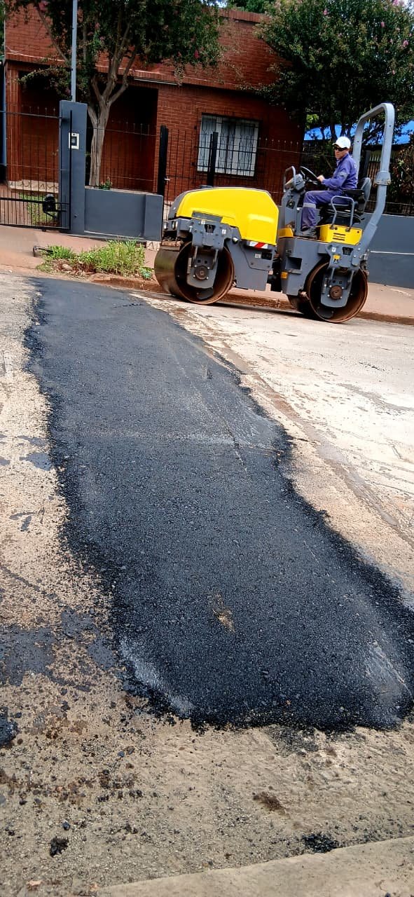En paralelo, un equipo de Obras Públicas avanza con un plan de bacheo en distintos puntos estratégicos de la ciudad, interviniendo en: