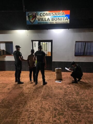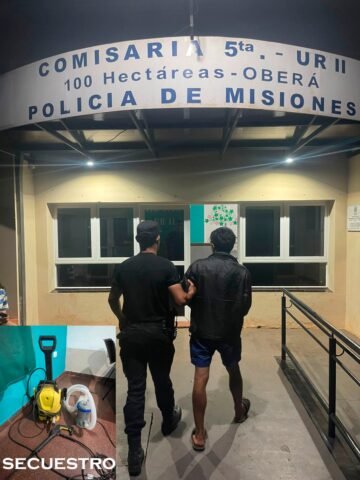 Por otra parte, cerca de las 02:00 horas de la madrugada, una patrulla de la Seccional Quinta de Oberá capturó a Ezequiel M. (25), quien fue sorprendido huyendo con objetos robados de una casa del Barrio Punta Alta. La detención tuvo lugar en Avda. Yerbal Viejo y calle Tabay, donde la policía incautó la hidrolavadora y la bomba hidrante sustraídas minutos antes.
