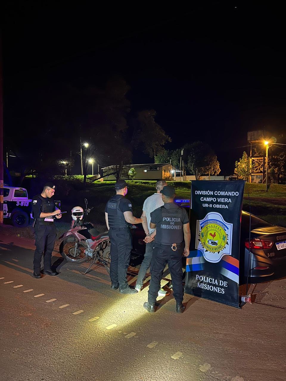 Tras recorridas preventivas, en la intersección de la Ruta Nacional 14 y la Ruta Provincial 6, los uniformados localizaron una motocicleta Corven Triax 150cc, que coincidía con las características aportadas. De inmediato interceptaron el rodado e identificaron a su conductor como Héctor Sebastián E. (27), domiciliado en esa localidad.
