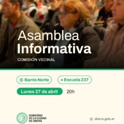 Desde el Gobierno de la Ciudad de Oberá convocan a los vecinos de los barrios, Kindgren, Norte, Ecológico y Hultgren a participar de la asamblea informativa sobre el proceso de elecciones para la conformación de autoridades de las Comisiones Vecinales.