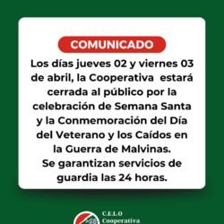 La cooperativa no atenderá al público el jueves 2 y viernes 3 de abril. Durante esas jornadas, los usuarios podrán realizar pagos y comprar Cash Power de manera online o en puntos habilitados.