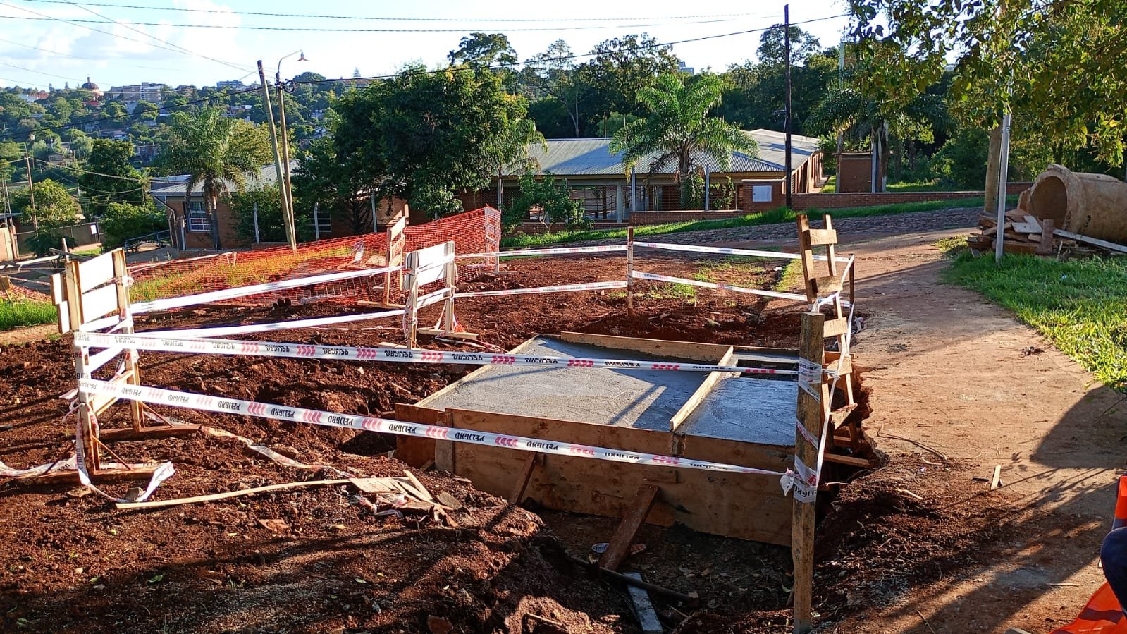 Se están construyendo dos cámaras pluviales sobre la calle Hernán Reyes, un punto estratégico donde desemboca la mayor parte del caudal proveniente del barrio. Estas estructuras permitirán captar y canalizar de manera más eficiente el agua, reduciendo inconvenientes durante precipitaciones intensas.